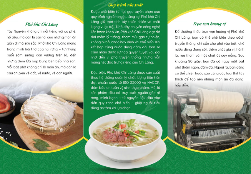 Đặc biệt, Phở khô Chi Lăng được sản xuất theo hệ thống quản lý chất lượng tiên tiến đạt chuẩn quốc tế ISO 22000 và HACCP, đảm bảo an toàn vệ sinh thực phẩm. Mỗi lô sản phẩm đều có truy xuất nguồn gốc rõ ràng, minh bạch – từ nguyên liệu đầu vào đến quy trình chế biến – giúp người tiêu dùng an tâm khi lựa chọn.